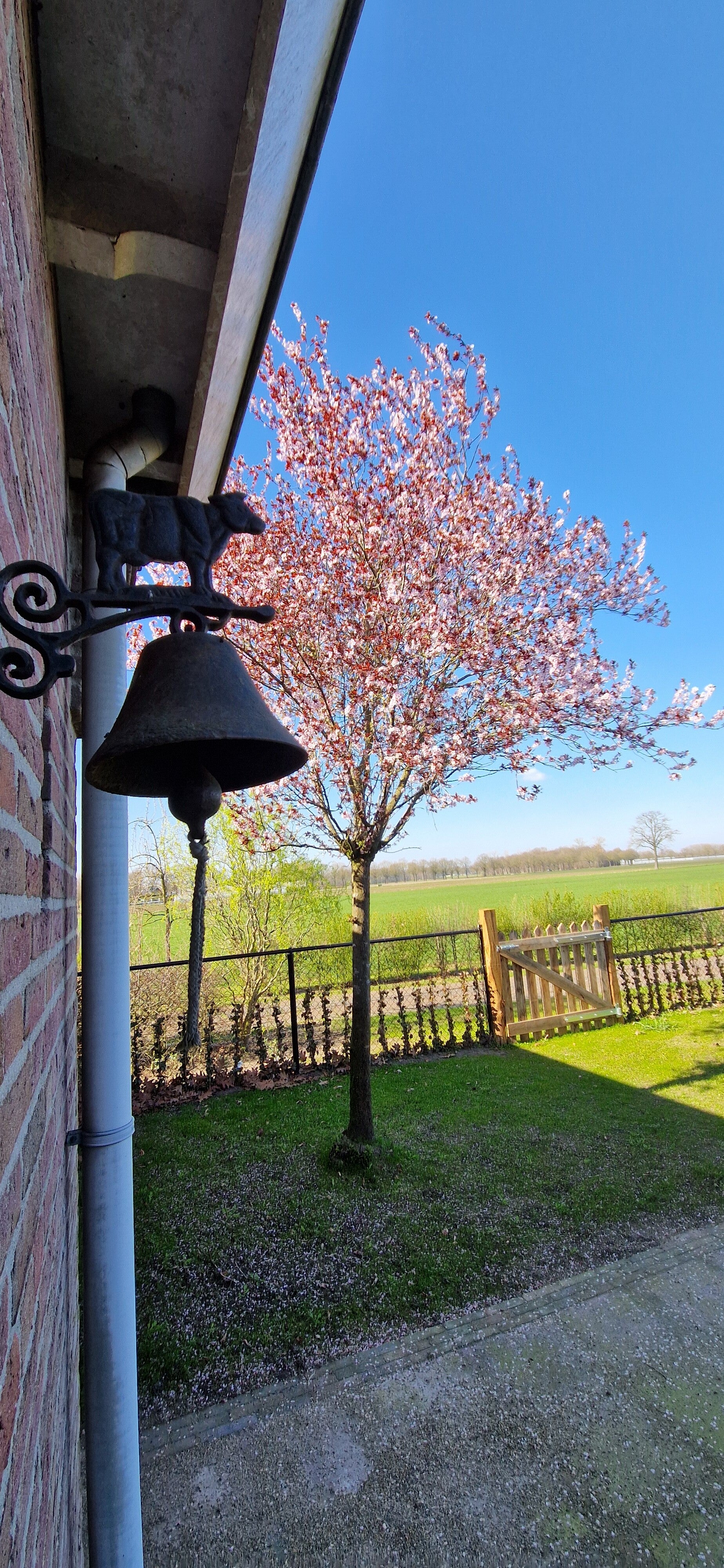 Het huisje beschikt over twee verdiepingen. Op de begane grond vind je een hal met toilet, een open keuken en een lichte en sfeervolle woonkamer met televisie, waar je een prachtig uitzicht hebt over de omliggende landerijen. De keuken is uitgerust met moderne apparatuur, waaronder een vaatwasser en combi-oven, zodat je alles binnen handbereik hebt voor een comfortabel verblijf.